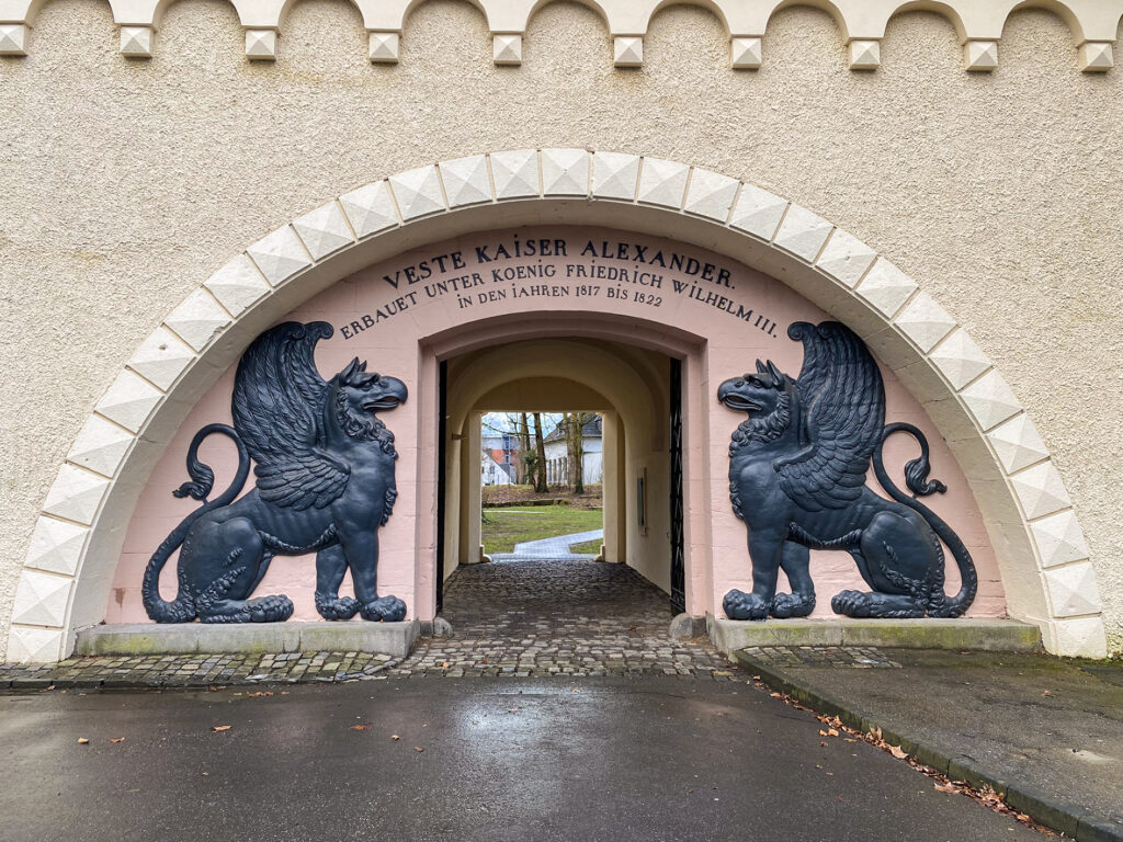 „Die Feste Kaiser Alexander wurde von 1816 bis 1824 auf dem sogenannten Hunnenkopf oder Spitzberg (heute Karthause) erbaut. Mit einer Fläche von etwa 262.000 m2 war sie eines der größten preußischen Festungswerke des 19. Jahrhunderts. Nach ihrer Aufgabe 1903 blieb das Werk unter militärischer Verwaltung und diente in der Folgezeit der Armee als Übungsplatz und Truppenunterkunft. Nach dem Ersten Weltkrieg wurde die Anlage 1922 aufgrund der Bestimmungen des Versailler Vertrags geschleift. Der Vortrag beleuchtet die Geschichte des Festungswerks von den Anfängen 1816 bis die heutige Zeit.“